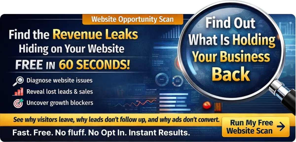 Run our AI Website Opportunity Scan to instantly uncover what’s broken, missing, or underperforming — and see exactly where your biggest growth opportunities are hiding.
